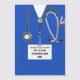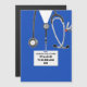 Creative medical school graduation card template for doctor graduate featuring hospital scrubs and funny Swiss Army knife. To personalise edit text to add physician's name.
