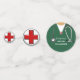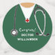 Creative doctor graduation party decoration for medical school grad celebration featuring green hospital scrubs and stethoscope. To personalise edit text to add name of physician or otherwise customise.