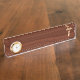 The nameplate looked exactly as pictured, I was very happy with this product! It also arrived promptly after placing my order! I would definitely recommend this product! The printing turned out exactly as I designed it, very pleased!