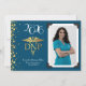 Celebrate the new graduate from doctor of nursing practice school with this gold DNP caduceus graduation announcement in navy blue! Elegant with a vintage photo border and gold confetti accents! Perfect for anyone graduating as a DNP with their degree as a nurse practitioner!