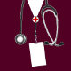 Creative doctor party decoration for medical school grad or physician birthday celebration featuring maroon hospital scrubs and stripes.