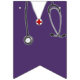 Unique doctor party decoration featuring creative purple hospital scrubs and stripes.