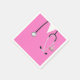 Creative medical school graduation or doctor birthday party napkins featuring pink hospital scrubs and funny Swiss army knife in the pocket.