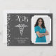 Celebrate the new doctor of medicine graduate from medical school with this silver and Grey medical caduceus graduation announcement! Elegant with a vintage photo border and silver confetti accents! Perfect for anyone graduating as an md or do with doctorate!