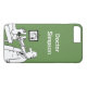 Add your choice of name. Doctor is using his stethoscope on the feet of a patient. Funny cartoon with green background. Phone case for a doctor, physician, or GP