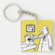 Doctor is checking a patient's feet with his stethoscope. Doctor Keyring with funny cartoon illustration.