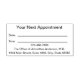 This stamp says "Your Next Appointment" at the top. There are also lines for the date and time of the appointment. There's also display text you can edit to create a custom message if desired. The bottom has display text you can edit for the doctor's name (or practice name), phone number, and a custom message such as your street address. All text can be edited or deleted.