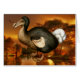 The dodo was a flightless bird from the island of Mauritius. It stood about 3 feet tall, weighing about 44 lbs. The dodo has been extinct since the mid-to-late 17th century. It is commonly used as the archetype of an extinct species because its extinction occurred during recorded human history, and was directly attributable to human activity. The Dodo had greyish plumage, a 9-inch bill with a hooked point, very small wings, stout yellow legs, and a tuft of curly feathers high on its rear end.
