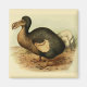 The dodo was a flightless bird from the island of Mauritius. It stood about 3 feet tall, weighing about 44 lbs. The dodo has been extinct since the mid-to-late 17th century. It is commonly used as the archetype of an extinct species because its extinction occurred during recorded human history, and was directly attributable to human activity. The Dodo had greyish plumage, a 9-inch bill with a hooked point, very small wings, stout yellow legs, and a tuft of curly feathers high on its rear end.