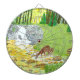 A dart board with a beautiful forest scene including doe and fawn drinking from a stream near a waterfall. Original artwork by W.B.