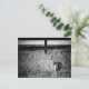 A postcard with a black and white photo of a doe (deer).
