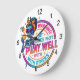 Purchased this online and it got delivered quickly. It was a present for my Dads 70th birthday. He loves clocks so decided to get him one with something written on it. Battery went in and it started working straight away. Dads had no issues with it. Printing was just how it came up online.