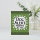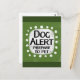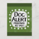 An irreverent and cute typographic animal design that says "Dog Alert, Prepare To Pet". It features black and red text on a white rectangle with funky, playful white dots surrounding it, all on a grey background.
