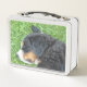 This is a standard metal lunchbox that appears to work just fine. We designed this box ourselves with an uploaded photo and custom text on the front and back. It looks absolutely beautiful except the front of the lunchbox is not centered like it shows in the photo. The print borders don't align with the inset flat part of the box where the preview photo online showed it perfectly centered in there. The back looks nice and centered though.