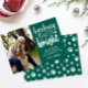 Calling All Dog Lovers! 🐶🎄 Funny and Simple Christmas Photo Card with the Quote 'Barking Spirit Bright' in a Mixed Modern Typography Style Over a GREEN Background. Use the template to Add your dog or pet photo or family portrait with your Furry Friend a short custom message and your signature.