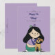 This birthday invitation features an illustration of a young girl that hugs a cute brown dog. This is a great birthday card for dog birthday.