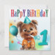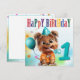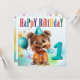 Cute Terrier in Party Hat with Horn, Celebrates a Birthday.