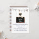 Celebrate your puppy dog's birthday with this handsome party pug with sign "Come. Sit. Stay." ! A grey and brown flag bunting at top on solid white background. Back has grey/brown stripes. Templates created for you in blue, but can be changed to any colour by clicking on customise further link. Need help? Use the Chat feature, and I'll be happy to help.