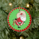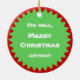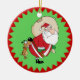 This is a cute and funny Holiday ornament that will be sure to bring a smile! One side shows an exasperated Santa Claus being bitten by a dog. The other side says "Oh well, Merry Christmas anyway!" The text is fully customisable, so you may make it say whatever you'd like. Both sides of the ornament are bordered by an attractive red zigzag pattern. *This design uses clip art from www.graphicsfactory.com.
