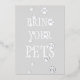 Gold cat and dog paw prints walk over the words "Bring your pets" which can be replaced with your own personalised message. Customise the back of your card to invite furry and non-furry friends to your special occasion.
