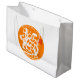 Customisable large gift bag in white with white traditional Chinese papercut of Dog and white lettering on orange large round shape. You can easily change background colour and text (font, colour, size and position) by clicking the customise button. Matching greeting card, postcard and sticker. Perfect for Chinese New Year of the Dog 2018 or birthday (people born in Dog Year). ----- "The Dog (狗) is one of the 12-year cycle of animals which appear in the Chinese zodiac related to the Chinese calendar. The Year of the Dog is associated with the Earthly Branch symbol 戌. The character 狗 refers to the actual animal while 戌 refers to the zodiac animal. (...) People born within these date ranges can be said to have been born in the "Year of the Dog", while also bearing the following elemental sign: