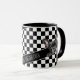 Start your day with a smile and the adorable charm of this Frenchie chequered mug available exclusively on Zazzle. Featuring a stylish black-and-white chequered pattern with a playful French Bulldog peeking out, this mug is perfect for Frenchie lovers and those who appreciate a touch of whimsy. Personalise it with your name for an extra-special touch. With its bold design this mug makes an excellent gift or addition to your coffee cup collection. Designed by Anna Szalacha, Happy Ann Designs 2024.