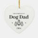 First Christmas as a dog dad heart ornament for pet lovers. Elegant porcelain ceramic holiday ornaments in white with black lettering. Featuring Christmas trees and stars.