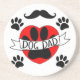 A dog paw print in a red heart with text on a ribbon. Original design with paws and a moustache. A gift idea for men.