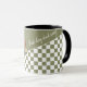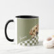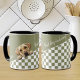 Celebrate your bond with your loyal companion with this stylish "Dog Dad Sage Olive Yellow Labrador" mug. Crafted with a unique blend of modern and playful elements, this mug combines a trendy sage and olive chequerboard pattern with an adorable, lifelike illustration of a black Labrador peeking over the edge. The mug is fully customisable, allowing you to add your name or a personal message, making it an ideal choice for dog dads looking to add a bit of personal flair to their morning coffee routine. Designed by Anna Szalacha, Happy Ann Designs 2024.