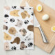 Dog Days - Dog Breeds and Dog Paws Pattern Tea Towel