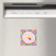A frosted doughnut with colourful sprinkles in the shape of a dog, with a rainbow background and spilled sprinkles. Bring this adorable pet pastry on magnet home with you! Choose the size or shape that suits you.