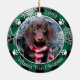 Dog First Christmas Snowflake Photo Green Plaid Ceramic Ornament