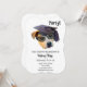 A Dog with a graduation hat and sunglasses. Let everyone know you'v'e got that degree with this unique party invitation. Click customise to add your own words.