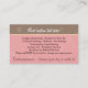 A truly unique and charming 2-sided appointment card for your pet/dog grooming service. Sure to get a prominent place on the fridge because the card features an adorable dog sitting under a hair dryer admiring her new manicure and pedicure. Her hair is rollers and she is wearing a spa style towel decorating in little pink bones.