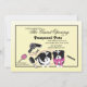 An announcement card with a pale yellow background that's framed with a thin black border. Two cute dogs are surrounded by the tools of the trade.