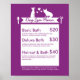 No more hiding your grooming salon's prices and services! Use this grooming menu poster to show all the grooming services your salon provides - and make it easy for customers to upgrade! Want to add or change something in the design? You can change the existing text into ANYTHING you want! Simply click the CUSTOMIZE button, and edit all the text and easily add your own services and prices. Inside the customise editor you can even change the font type, background and font colour! This dog grooming menu is part of a marketing toolkit - a series of matching marketing items including posters & business cards which can be found in our store.