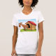 This design is a dog in a dog house. The dog house is wooden with a red roof and the dog is part way out. This dog in a dog house design looks great on this Womens T-Shirt