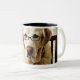 Dog in morning routine Two-Tone coffee mug