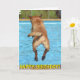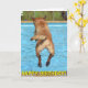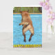 Dog leaping into swimming pool photo greetings card. Front text reads "Happy Birthday", inside text reads "Hope you have a great day!" Text can be customised.