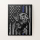 Dog Lover | Black Labrador American Flag Thin Line Jigsaw Puzzle