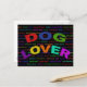 The words "DOG LOVER" in colourful type over a list of dog breeds in colourful font on a black background. Find your favourite dog breed in the list which includes poodles, terriers, labrador retrievers, chihuahuas, and many, many more kinds of dogs. Makes a great gift for any dog lovers out there!