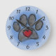Dog paw print and heart watercolor in red, black and grey. Halftone effect applied to the image. Blue background version. Custom wall clocks. Gift idea for dog lovers.