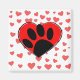 Red heart, dog paw print drawings. Hearts all-over background. Gift idea for dog lovers.