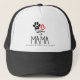 A Dog mama modern black dog trucker hat with cute dog paw and red heart design. This is a trucker hat that can be personalised with a name or other words > just delete that option if not using it.