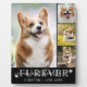 Create a photo memorial keepsake display for your most loyal furry companion or create a comforting sympathy gift for the loss of a pet dog. The design features an easy-to-upload photo collage template with 4 pictures and the title FuREVER IN OUR HEARTS in a modern handwritten script typography accented with dog paw prints in grey and white and personalised with name and dates or your custom text against an editable black background colour. ASSISTANCE: For help with design modification/personalisation, colour change, resizing or transferring the design to another product, contact the designer BEFORE ORDERING via the Zazzle Chat MESSAGE tab or email makeitaboutyoustore@gmail.com.