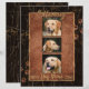 In Memory of your dog, cat, or any pet with paws. Designed with a rustic, grunge brown background surrounded with a faux gold bar frame and black marble background and a few paw prints. Pay tribute to a loved pet with this personalised memorial gift keepsake or offer your condolences with a personalised sympathy gift from Healing Tears to honour a special dog in your life or a friend's dog that they will cherish. Add your photo images and change the text (Name and dates) to your own. This design features 3 placeholders to add your dog photograph.