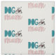 Lovely modern fabric featuring an adorable sleeping spotted dog with the wording "Dog mum" in teal and pink fonts