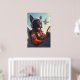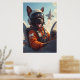 Take off with this energetic French Bulldog, suited in a red-trimmed Air Force flight uniform. His helmet reflects a bright blue sky, and his name patch proudly reads “WOOF-ONE.” Perched confidently in his cockpit, he’s moments from liftoff while another jet behind him leaves a cloud of cartoonish smoke. With tongue out and eyes wide, this pup is ready for action. Ideal for military-themed rooms, aeroplane enthusiasts, or anyone who loves brave little dogs.