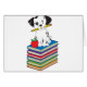 A dalmatian puppy with a pencil in his mouth is sitting on a stack of books. Customise this product with a name or message to make it truly unique