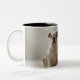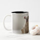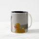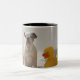 Dog on mat with plastic duck Two-Tone coffee mug